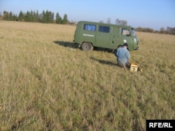 “Тут працуюць і зь “Белгідрагеалёгіі”, Міністэрства аховы навакольнага асяродзьдзя. Вось пляцоўка – 5 км у даўжыню на 5 у шырыню. Гэта ўжо ня толькі вышук, мы тут трэці месяц. Пра вывады гаварыць ня буду – толькі ўрад. Стаіць знак круглы – значыць, сейсмазнак для вызначэньня калыханьня глебы. Вунь там адзнака глыбіні – даламіт залягае на 94, а глеба на 142, 170 мэтраў...”