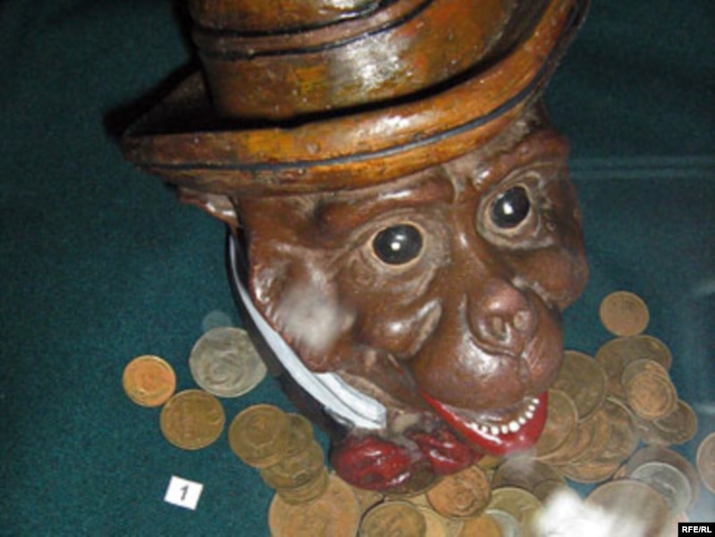 У савецкія часы распаўсюджаныя былі скарбонкі ў выглядзе гліняных ці парцалянавых катоў, сьвінак. Некаторыя скарбонкі мелі даволі экзатычны выгляд. Напрыклад, малпы. Кажуць, што гэты апошні экспанат супрацоўніца музэю прынесла з дому.