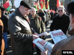 Апазыцыйныя камуністы скарысталі момант, каб раздаць прысутным газэту “Товарищ”.