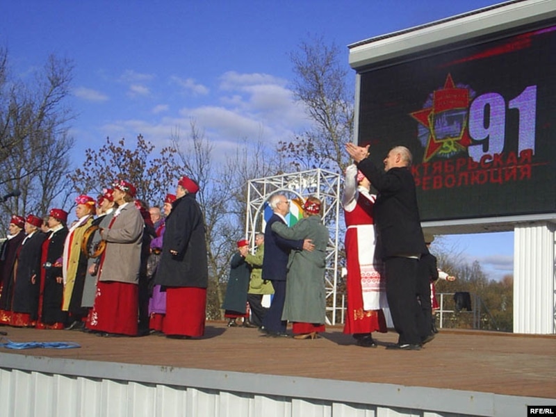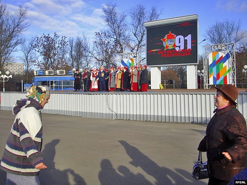 Вэтэранскія хоры сьпявалі рэвалюцыйныя ды савецкія песьні і запрашалі ўсіх ахвотных паскакаць пад гэтыя сьпевы.