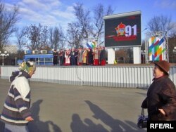 На ўрачыстым сходзе, які праходзіў у Віцебску на плошчы Леніна, слова далі толькі прадстаўнікам КПБ, БРСМ і “Белай Русі”.