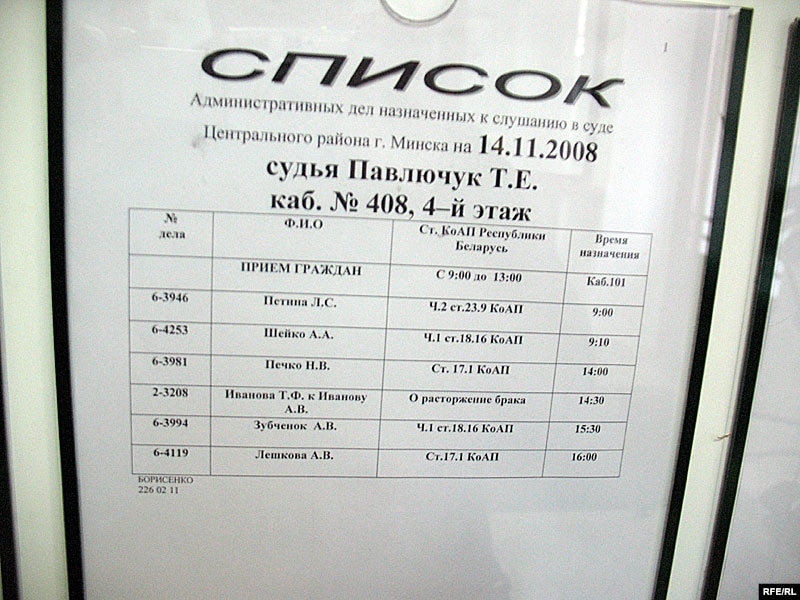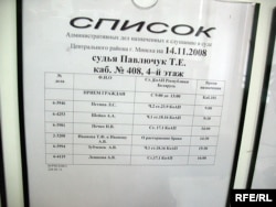 У Цэнтральным судзе пакуль ніякіх зьменаў: шыльды з прозьвішчамі Есьмана, Ільіной і Паўлючук, як і раней, знаходзяцца на дзьвярах іх кабінэтаў.