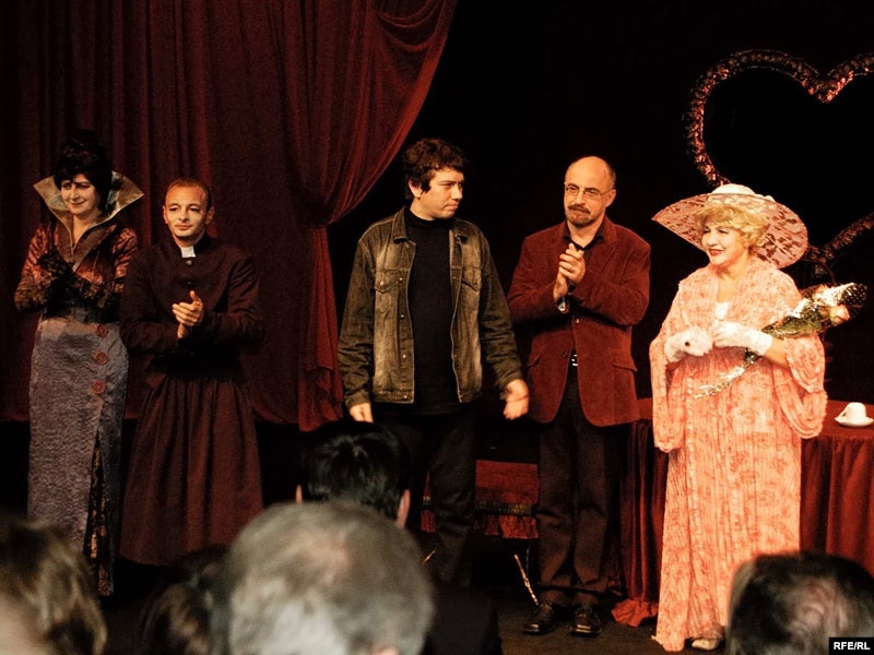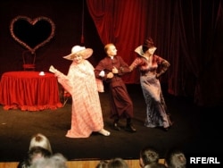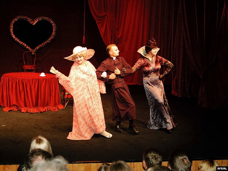 Да сцэны п’есу давёў рэжысэр Вэнедыкт Растрыжэнкаў. Гэта вельмі ўдалы прыклад працы пастаноўшчыка з маладым аўтарам. Ён пазбавіў твор шматслоўнасьці, дакладна адпрацаваў кампазыцыю п’сы. Што да пастановачнага вырашэньня, дык адзначым дакладнае разуменьне рэжысэра прыроду пачуцьцяў камэдыі, дзе пэрсанажы існуюць на ўзроўні гратэску. Як на шыбеніцы з-пад ног злачынцы выбіваюць апору, гэтак Растрыжэнкаў выбівае з-пад ног актораў ратавальную ў беларускім тэатры бытавое апірышча. Твары -маскі адбеленыя, касьцюмы, парыкі, плястыка шаржаваныя. Гуляйце на сцэне ў жыцьцё, гуляйце ў каханьне. Гуляйце ў тэатар. І акторскае трыо — Тацяна Мархель, Галіна Чарнабаева, Сяргей Шымко так захоплена гуляюць, што гледачы ні на хвіліну не забываюць на тое, каб забыць, што яны ў тэатры. У гэтым вясёлым, стыльным, прынцыпова нерэалістычным спэктаклі тэатар з жыцьцём не пераблытаеш. Зусім у новым амплуа мы бачым артыстак Тацяну Мархель і Галіну Чарнабаеву. Лёгка пераходзіць з жаночай ролі Лізы ў мужчынскую ролю Абата Сяргей Шымко.
