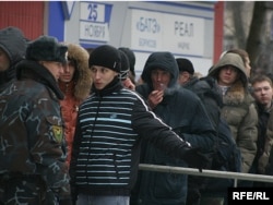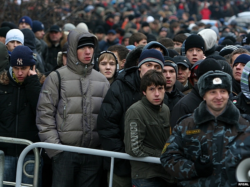 Ля касаў стадыёну “Дынама” ў Менску сабралася прыкладна 2 тысячы чалавек.