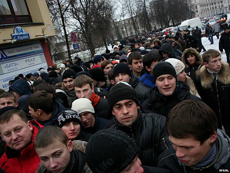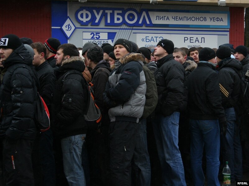 19 лістапада пачалі прадаваць квіткі на футбольны матч групавога турніру Лігі чэмпіёнаў БАТЭ – “Рэал”. Чэргі расьцягнуліся на некалькі сотняў мэтраў.