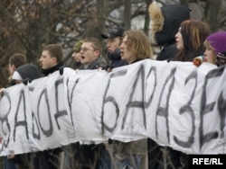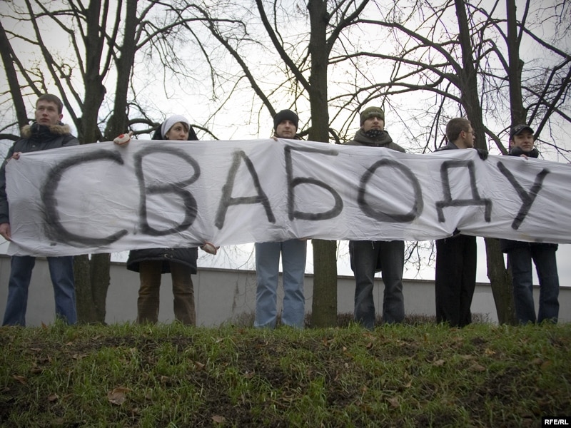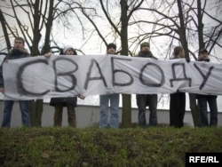 11:10 Моладзь, салідарная з Аляксандрам Баразенкам, пачала пікет каля будынка суду. Яны разгарнулі расьцяжку "Свабоду Баразенкі" і скандуюць "Уладу - народу, моладзі - свабоду!"