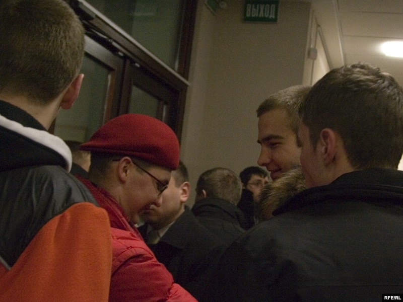 9:20 У судовую залю, яшчэ да таго як людзей прапусьцілі ў будынак суду, каб прысутнічаць на паседжаньні ў справе Баразенкі, спэцназаўцы прывялі каля двух дзясяткаў людзей спартыўнага выгляду.