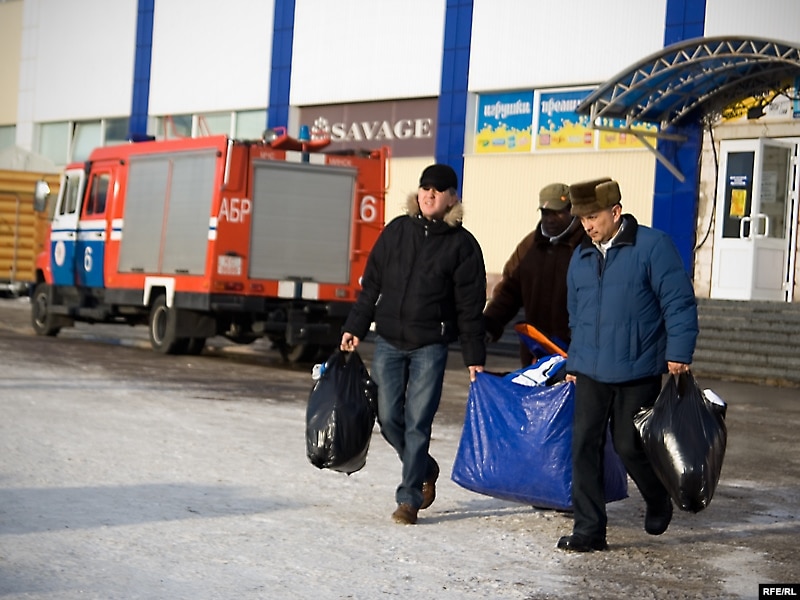 “Бачна, што будынак ГЦ пасьпешліва пакідаюць гандляры і наведнікі. Многія зь іх выносяць вялікія торбы з таварам”, – удакладніў Алесь Таўстыка.
