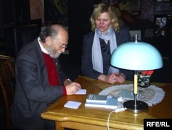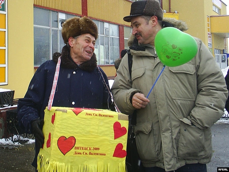 А зусім побач, у Літаратурным музэі, усіх наведнікаў віншаваў са сьвятам вядомы віцебскі паэт Давід Сімановіч. Ён падрыхтаваў “валянцінкі” з уласным вершам-пажаданьнем і пакідаў на іх свае аўтографы.