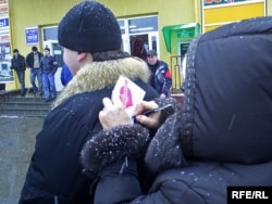 Бясплатныя каляровыя паштоўкі зь лягатыпам кампаніі “Наш дом” людзі разьбіралі вельмі ахвотна, але натоўп перад уваходам у гандлёвы цэнтар выклікаў падазрэньні службы аховы. Актывістам прыйшлося даваць тлумачэньні ды віншаваць ахоўнікаў, якія цьвердзілі, што на падобныя дзеяньні патрэбны дазвол адміністрацыі.