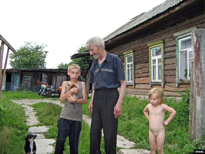 Дзед Іван зь вёскі Савічы Брагінскага раёну, дзе са згоды вышэйшага кіраўніцтва краіны жывуць самасёлы, распавядае, якім чынам улетку тут ладзяць сабе “лазьню” ягоныя малалетнія ўнукі: