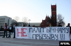 Іншая мэта акцыі – патрабаваньне вызваліць палітвязьняў. Моладзь скандавала "Свабоду!" і трымала ў руках партрэты Мікалая Аўтуховіча, Юрыя Лявонава, Ігара Асіпенкі і Арцёма Дубскага, якога, магчыма, у канцы гэтага месяца будуць судзіць за парушэньне правілаў адбыцьця пакараньня па справе 14-ці.