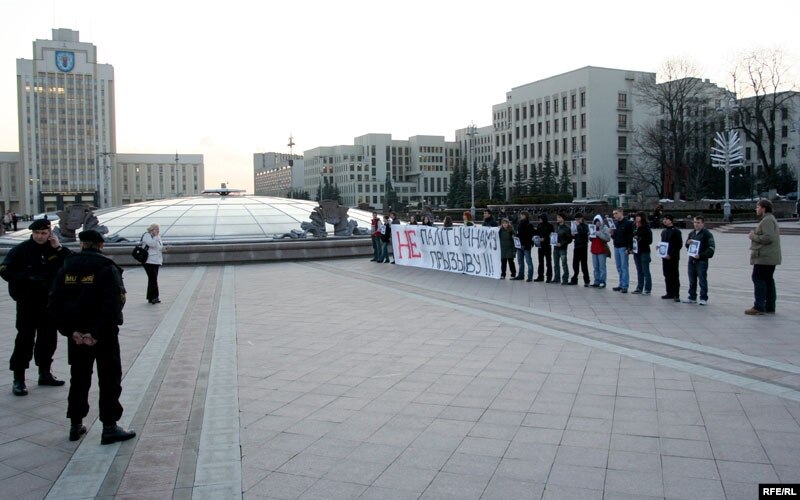 А ўвечары на Кастрычніцкім пляцы – яшчэ адна акцыя. Там зьбіраюцца актывісты "Маладой Беларусі", руху "Джынс за свабоду", кампаніі "Эўрапейская Беларусь", а таксама "Вольная моладзь".