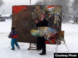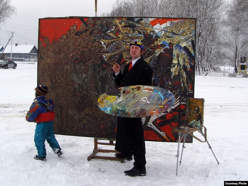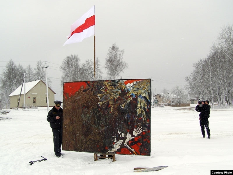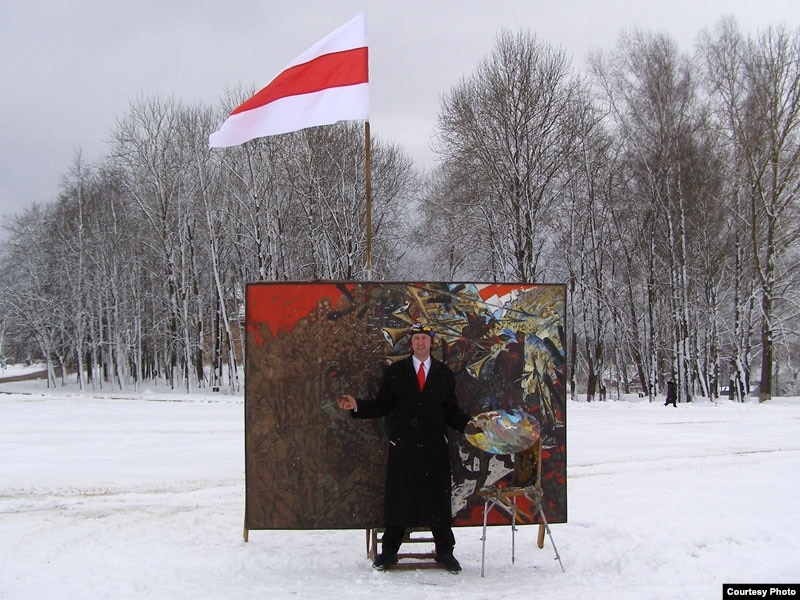 На цэнтральнай плошчы мястэчка Бобр мастак Алесь Пушкін намаляваў карціну “Незалежнасьць”. Такім чынам, ён адсьвяткаваў 25 сакавіка.