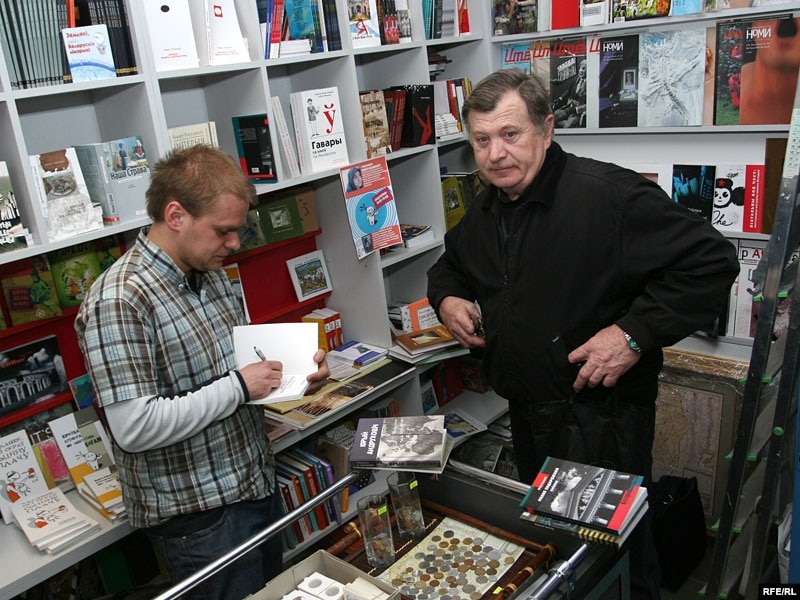 Яшчэ за пятнаццаць хвілінаў да прызначанага пачатку сваёй гандлярскай працы Павал Касьцюкевіч стаў за прылавак, бо колькі ахвотных набыць кнігі зь ягоных рук з аўтографам ужо былі ў кнігарні. На просьбу параіць кнігі некага яшчэ з маладых літаратараў Павал адгукаўся з ахвотай.