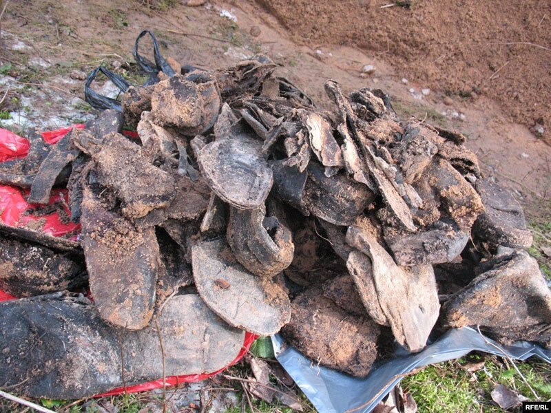 Трапляецца тое, што звычайна траплялася ў гэтых магілах падчас ранейшых эксгумацый. Шмат скуранога абутку, рэшткі вопраткі, гумовы абутак – галёшы, бахілы, склееныя з гумы ад аўтамабільнай камэры. Косткі, якія тут удалося яшчэ сабраць. Паломаныя, пабітыя косткі, бо яма рабаўнічая. Ну і, напэўна, самае цікавае, што ёсьць рэшткі кашалькоў, у якіх ёсьць манэты. І мяркуючы па папярэднім прагляду, усе манэты з датамі 30-х гадоў. Самая раньняя ёсьць гэта 31-ы год, затым 33-ці, 35-ы і 36-ы гады. Бачна, што гэта звычайныя людзі, бедныя, бо абутак часта самаробны. Гэта будзе матэрыял для далейшых дасьледаваньняў і вывучэньня Курапатаў”.