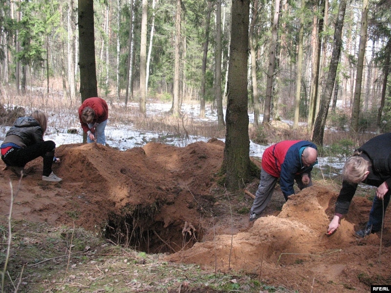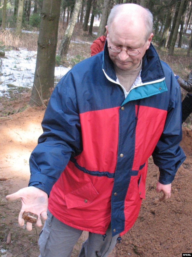 “Разрабаваная магіла, а зямля, якая выкінутая з магілы, зьмяшчае парэшткі расстраляных людзей, іх асабістыя рэчы, абутак, рэшткі вопраткі і гэтак далей. Мы, карыстаючыся гэтай магчымасьцю, спрабуем узяць нейкую дадатковую інфармацыю пра Курапаты, перабіраючы гэты пясок, зьбіраючы ўсе артыфакты, якія засталіся ад забітых.