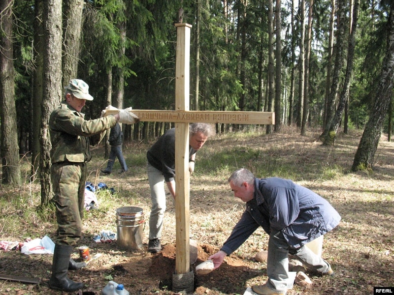 “Мы грамадой вырабілі гэты крыж, сабралі грошы, каб прыехаць і ўстанавіць яго. Так што гэта крыж ад усіх нас, хто зважае, што гэта месца, Курапаты, сьвятое для Беларусі. Такія месцы ёсьць і ў кожным рэгіёне. Для Браслаўшчыны гэта Беразьвечча, дзе сотні і тысячы нашых землякоў загінулі ў часы рэпрэсій. У Відзах таксама крыж пастаўлены. Але такое адно месца агульнанацыянальнае павінна быць. Гэта Курапаты. І нам хацелася, каб ад усіх жыхароў Браслаўшчыны, хто адчувае боль за тое, што адбылося, каб ён стаяў на гэтым месцы. Сёньня цудоўны дзень, Бог нам дапамагае. І мы спадзяемся яшчэ вакол крыжа зрабіць пірамідку з камянёў, каб ён прыгожа глядзеўся”.