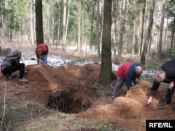 У мэмарыяльным комплексе “Курапаты” хапіла працы на ўсіх. Нагадаем, на днях невядомыя вандалы раскапалі дзьве магілы. Таму ўдзельнікі талакі вырашылі, перш чым засыпаць, перасеяць раскапаны невядомымі злачынцамі жвір. Гэтую працу ўзначаліў кандыдат гістарычных навук, археоляг Мікола Крывальцэвіч.