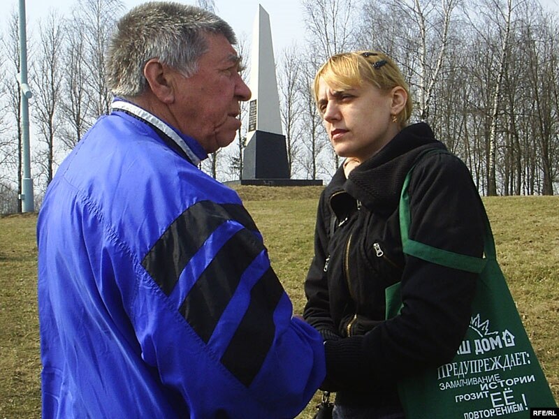 Былыя вязьні, якія сабраліся каля абэліску ў памяць закатаваных суграмадзян, што ў канцы вуліцы Цітова, абураліся будоўляй жылых дамоў на месцы канцлягера.