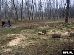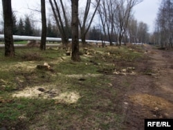 У Севастопальскім парку ў Менску высякаюць дрэвы