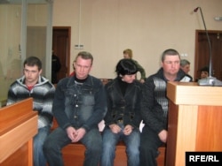 Калегія ў крымінальных справах Гомельскага абласнога суду абвясьціла прысуд пухавіцкім удзельнікам забойства аднавяскоўца, якога падазравалі ў падпалах. На здымку (зьлева направа): Аляксандар Петручэня, Ігар Макарэвіч, Тацьцяна Юхневіч, Сяргей Аліферовіч.