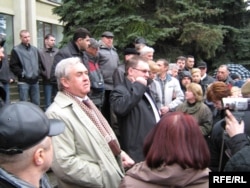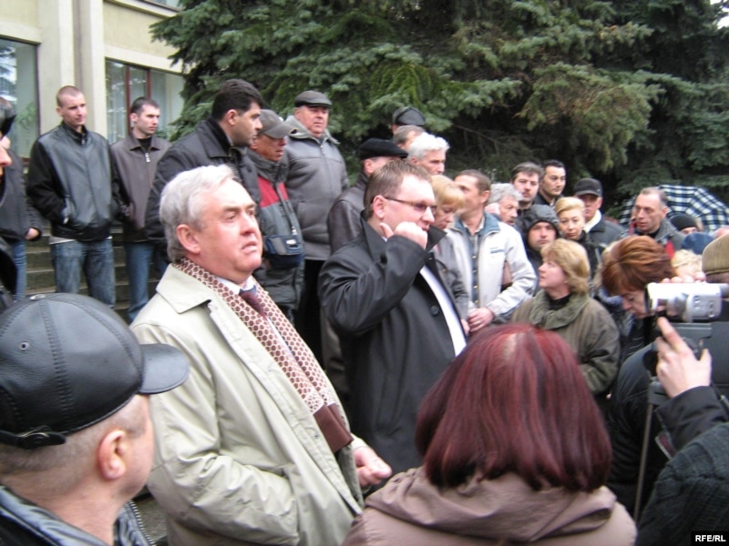 Пратэст прадпырмальнікаў у Гомелі. Старшыня аблсавету Валер Сяліцкі (у цэнтры) гатовы прыняць пэтыцыю