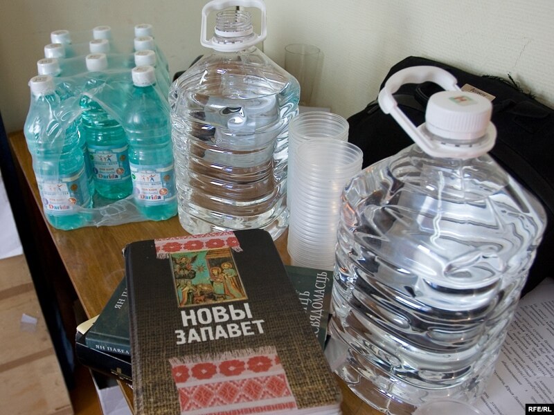 “Шэсьць бутэлек па 0,75. Дзесьці 5 літраў на ўсіх. А норма — прыкладна па 2,5 літра на чалавека. Але мы выправімся. Мы будзем больш выпіваць вады. Проста яшчэ не рассмакавалі гэтай “стравы”.