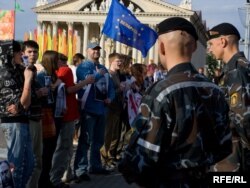Перад акцыяй зьявілася шмат палівачных машын. Плошчу палівалі моцнымі струменямі. Журналісты сабраліся крыху раней, і падумалі, што будзе разгон з вадамётамі.