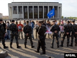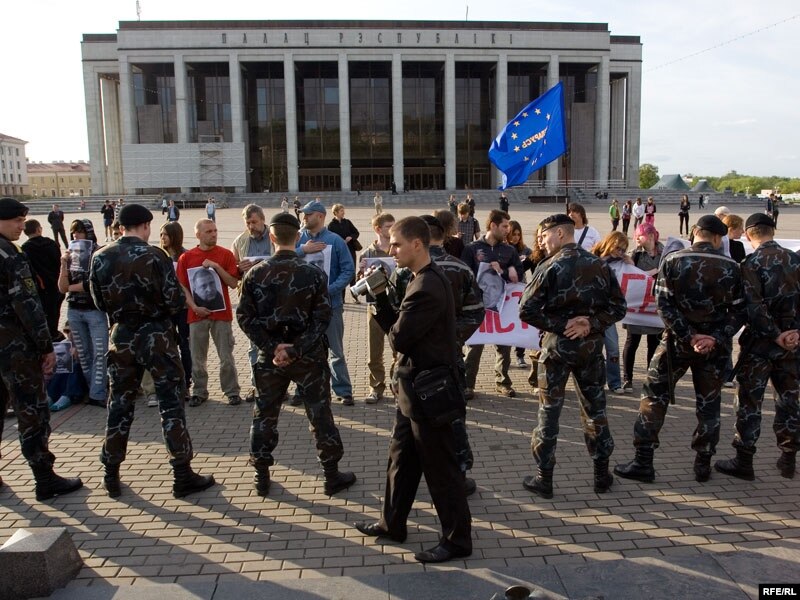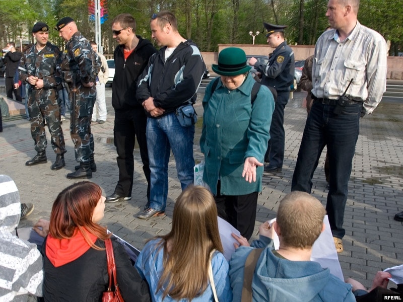 Шмат было спэцслужбаў, міліцыянты пачалі папярэджваць — вашыя дзеяньні незаконныя, разыдзіцеся, зьявілася шмат спэцназу. Пратэстоўцы дасталі расьцяжкі “Свабоду палітвязьням”, партрэты Аўтуховіча. Іх было каля 60 чалавек.