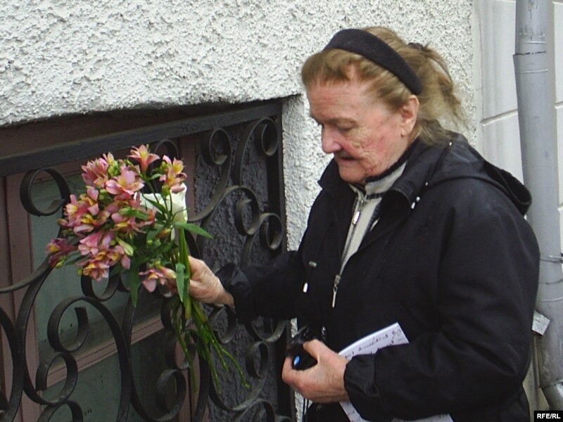 Бадай што самым кранальным быў момант ускладаньня кветак – спадарыня Ірына разам з віцебскімі сябрамі Таварыства беларускай мовы, пісьменьнікамі і проста жыхарамі Віцебску, якія памятаюць і шануюць памяць Быкава, прынесьлі да дошкі рознакаляровыя букеты.