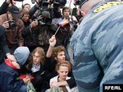“Цяпер мы знаходзімся ў Раменскім УУС, — расказаў Сяргей Андросенка ў суботу ўдзень БелаПАН. — Мы былі ў аўтобусе, і недзе за 150 мэтраў ад Вараб’ёвых гор нас спынілі супрацоўнікі ГІБДД, відаць, западозрыўшы, што мы едзем на гей-прайд. Мы выбеглі з аўтобуса й пабеглі ў бок агляднай пляцоўкі. Там нам удалося разгарнуць беларускія сьцягі, чырвона-зялёныя й бел-чырвона-белыя, а таксама расьцяжку з словамі “Раўнапраўе без кампрамісаў” і прайсьці зь імі каля 10 хвілін. Потым да нас падбег АМАП, нам закруцілі рукі за сьпіну, затрымалі й прывезьлі сюды.