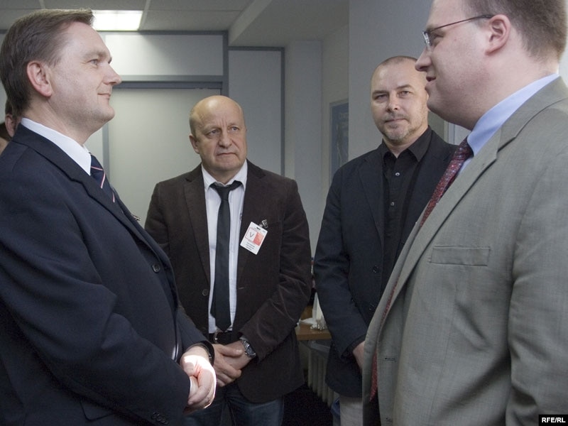Дырэктар менскага бюро Радыё Свабода Валянцін Жданко, журналіст Вячаслаў Ракіцкі, мастак усіх кніг Беларускай службы Радыё Свабода Генадзь Мацур, часовы павераны ў справах ЗША ў Беларусі Джонатан Мур.