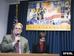 “Мы адзначаем 55-ю гадавіну Радыё Свабода. Мы толькі ладзім гэту імпрэзу, і для нас гэта вялікі гонар — прымаць прэзыдэнта Радыё Свабода спадара Гедміна і Аляксандра Лукашука, кіраўніка Беларускай службы Радыё Свабода”.