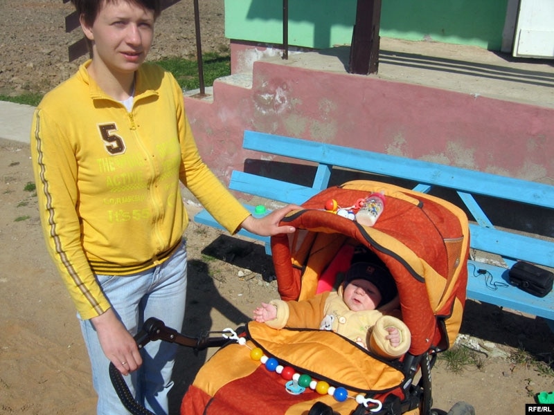 На выезьдзе 9 так званых прэзыдэнцкіх домікаў. Заходжу ў адзін зь іх. Сустракае гаспадыня — мініятурная, сьветлавалосая Віялета Казушчык. У свае 21 яшчэ не пасьпела папрацаваць заатэхнікам, бо нарадзіла хлопчыка Арцёма ды дзяўчынку Ангеліну. Убачыўшы незнаёмага дзядзьку, тая заплакала. (Дзіцё плача.)
