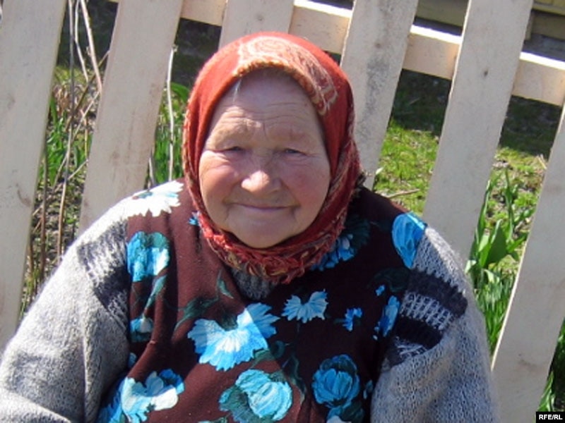 Наста: “Засталася адна ў 10 год, бацька 2 разы гарэў. Не дала нам улада будавацца — паслалі ўжо ўсіх на засьценкі. Далі страхоўку — а там ні вады, хаты ўсюды далёка, сьнег з мамай насілі ў хату. Пры Савецкай уладзе на заводзе рабіла, 10 год у школе прыбіральшчыцай. Перайшла ў саўгас — далі во гэты пакойчык. У 55 год на пэнсіі пайшла дзялкі браць буракі церабіць. Налічвалі па 5 рублёў — нічога добрага пры Савецкай уладзе не было. Працавала да 70 год — пэнсія 55 рублёў. Не магла за іх пражыць. Працадні мне ня ўсе пісалі — і няма. А запісаў, што ў саўгасе была, наогул няма, а я чалавек непісьменны…” (Плача.)