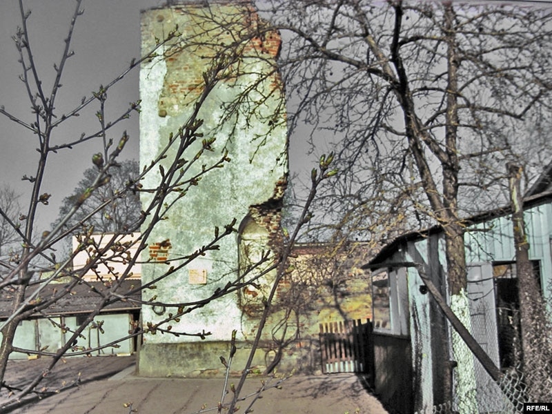 Зварочваем да падворку 70-гадовага спадара Ўладзіміра Ёсіка. Проста на гародзе — рэшткі фарнага касьцёла Сьвятой Тройцы 15-16 стагодзьдзя.