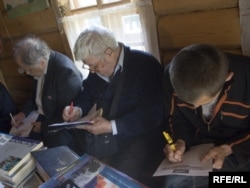 Аднак доўга гаварыць ёй не далі. Віцебскі паэт Давід Сімановіч прачытаў верш, прысьвечаны Васілю Быкаву, а потым дэлегацыі абвясьцілі, што ўсім даецца роўна дзесяць хвілін на наведваньне музэю.