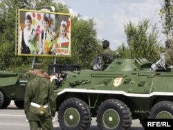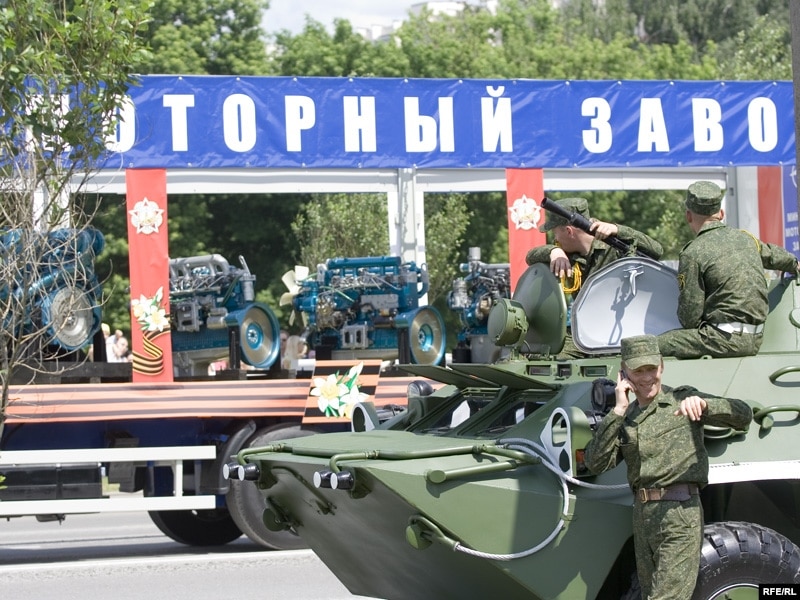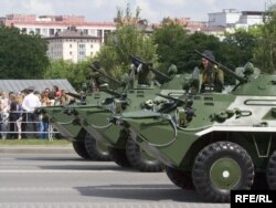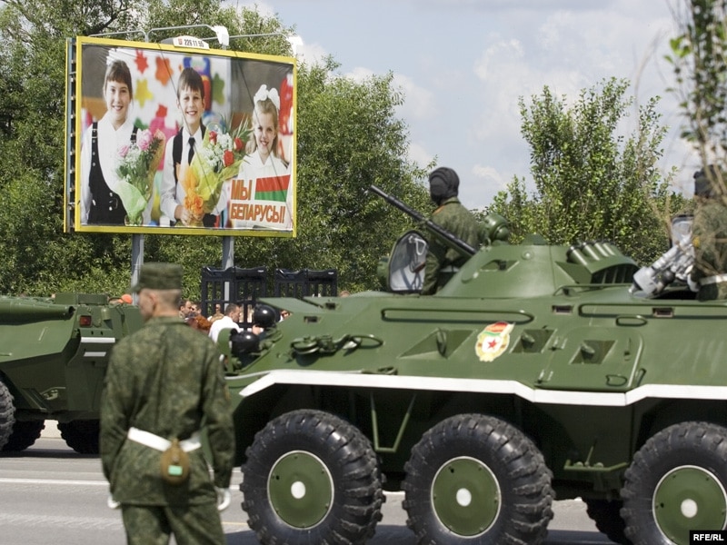 За праходам вайсковай тэхнікі можна было назіраць з-за агароджы.