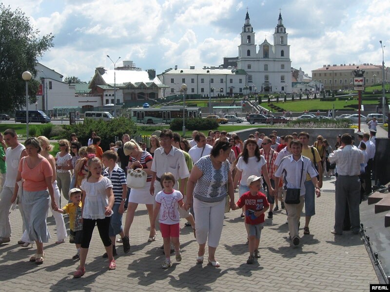 Спадарыня: “Я прыехала з Поўначы да сваёй роднай сястры, якая жыве ў Менску. І сёньня мы зь вялікай радасьцю прыйшлі на гэты парад, каб пабачыць, як беларускі народ адзначае гэтую вялікую дату. Нам вельмі падабаецца, што вакол многа маладых твараў. Усё прыгожа. Мы ведаем пра мінулагоднюю трагедыю, але спадзяемся, што гэтым разам нічога ня здарыцца. І я гляджу — многа міліцыянтаў вакол”.