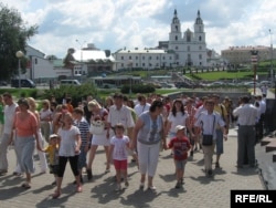 Цудоўнае надвор’е паспрыяла таму, што да праспэкту Машэрава пацягнуліся натоўпы людзей. Бальшыня ішла ад станцыі мэтро “Няміга”.