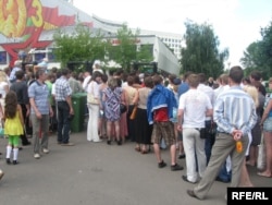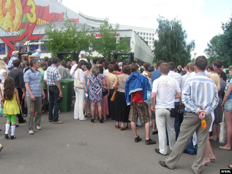Тэрыторыю пад аховай абгарадзілі турнікетамі. Нават з журналісцкім пасьведчаньнем дайсьці да мэталадэтэктара было немагчыма. На сьпякоце людзі не хацелі нікога прапускаць наперад. Але ў чэргах давялося пачуць, што праз дэтэктар дазвалялі праносіць ваду, але ня больш за паўлітровую бутэльку. А вось зь дзіцячымі вазкамі, у якіх ёсьць мэталёвыя дэталі, не прапускалі наагул. Забаранілі праходзіць на абгароджаную тэрыторыю і з сабакамі.