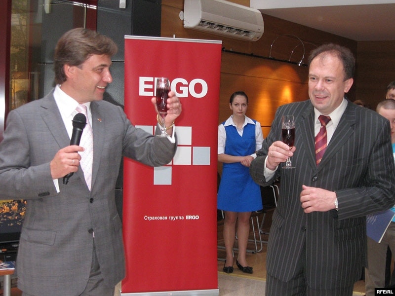 Эдмінас Багдонас разам з намесьнікам міністра замежных спраў Беларусі Валерам Варанецкім узьнялі келіхі за агульную гісторыю дзьвюх незалежных дзяржаў.