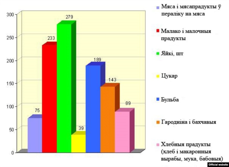 Паводле Белстату, у мінулым годзе спажываньне малака на душу насельніцтва склала 233 кіляграмы, яек – 279 штук, бульбы 189 кіляграмаў. Спажываньне мяса склала толькі 75 кіляграмаў.