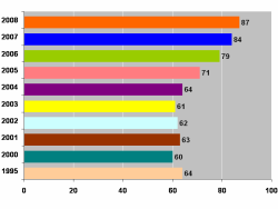 Спажываньне асноўных прадуктаў харчаваньня ў 2008 годзе. (на душу насельніцтва у год, кг)