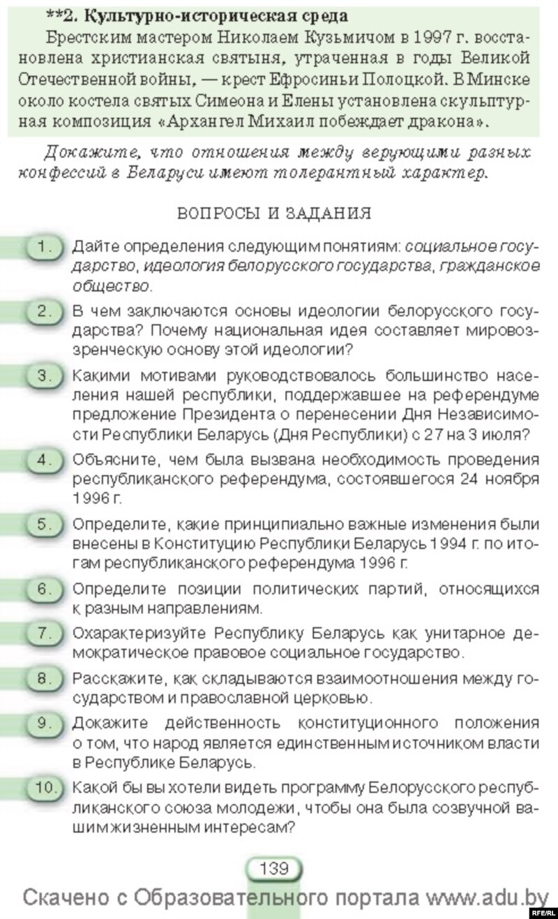 Новыя падручнікі гісторыі Беларусі ў школы яшчэ не паступілі, настаўнікі і дзеці атрымаюць іх бліжэй да 1 верасьня. Тым ня менш на ўсіх настаўніцкіх сэмінарах і ў мэтадычных рэкамэндацыях, у публікацыях “Настаўніцкай газэты” чыноўнікі ад адукацыі ўжо расставілі патрэбныя ацэнкі ў выкладаньні гісторыі Беларусі. Падзелы Рэчы Паспалітай, далучэньне беларускіх земляў да Расеі, паўстаньне Кастуся Каліноўскага выкладзены ўжо ў зусім іншай, фактычна прарасейскай вэрсіі.