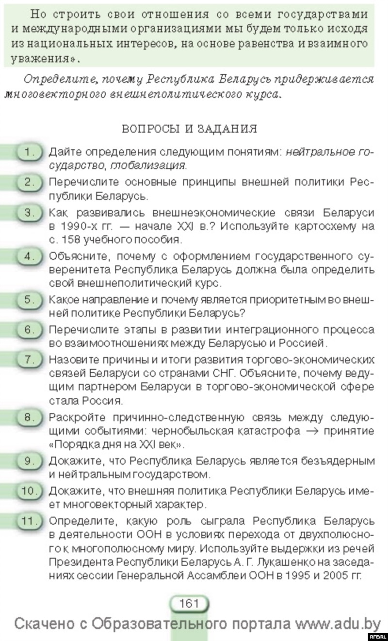 Старонка 161. Ці павінны школьнікі ў адказах на пункт 6 згадваць "газавую" і "малочную" вайну?