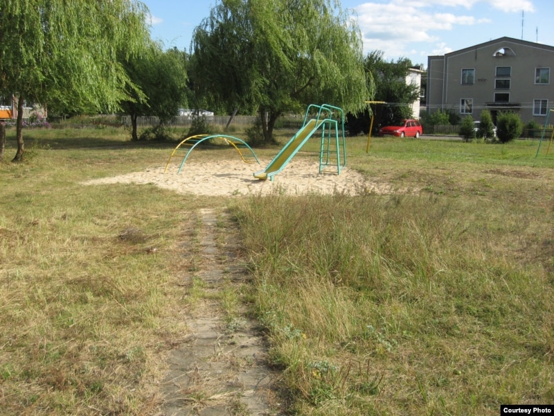 Ня лепей выглядае і дзіцячая пляцоўка. Цякуць дахі ў 4-хкватэрных дамах.