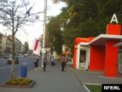 Сьцяг на транспартным прыпынку каля мэдычнага ўнівэрсытэту зьявіўся каля паловы на восьмую вечара і правісеў усяго некалькі хвілін – яго зьнялі людзі ў цывільным.