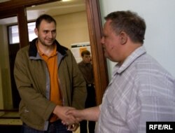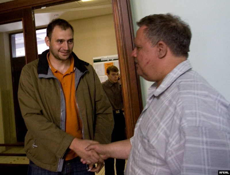 Сяржук Карповіч зь сябрамі пасьля суду